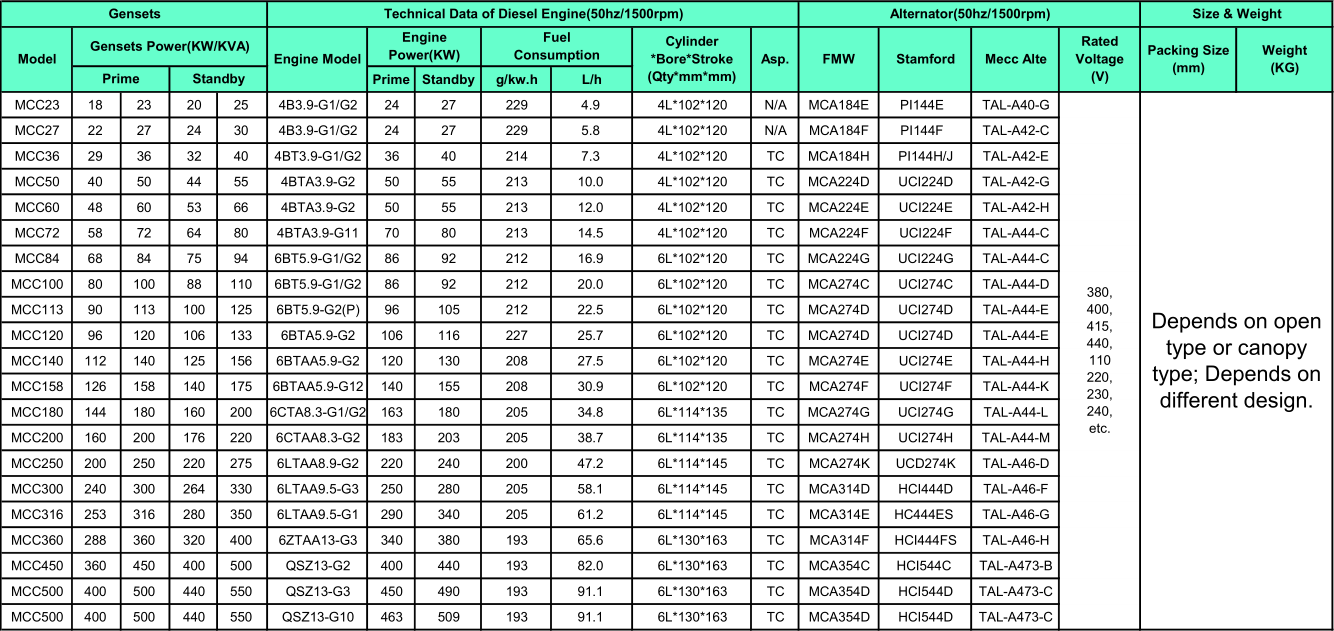 1. Cummins Engine generator Main Specification